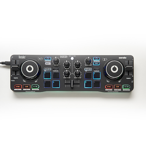 - Con su interfaz de audio integrada, la controladora DJControl Starlight ofrece escucha previa en los auriculares de modo que después puedas reproducir tu mezcla en los altavoces, lo que es perfecto para aprender o crear nuevas mezclas.-