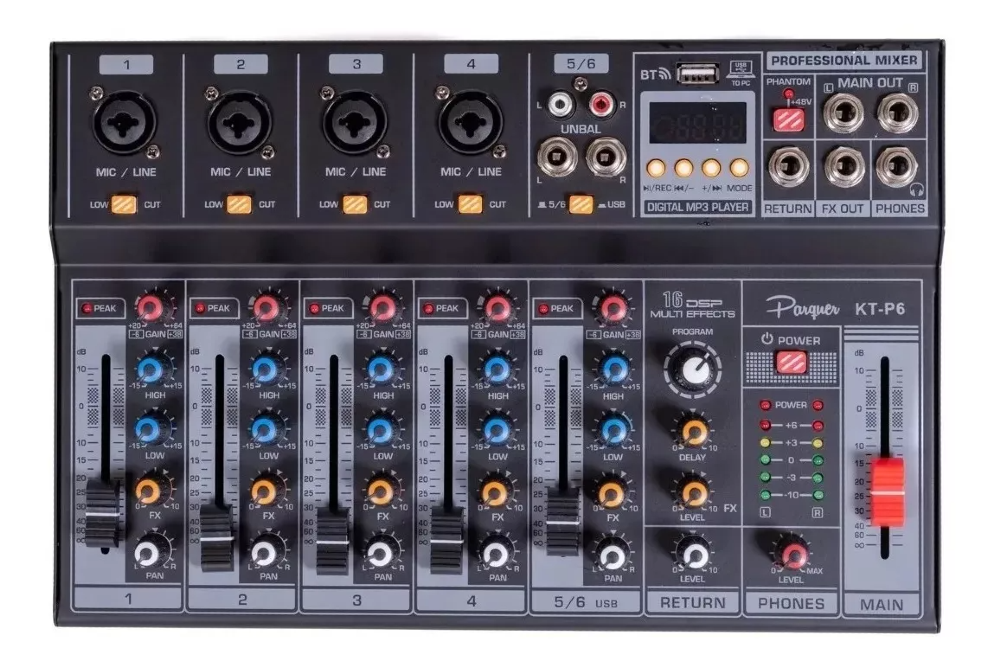 PARQUER Kt-p6 Mixer 6 Canales Phanton Grabacion