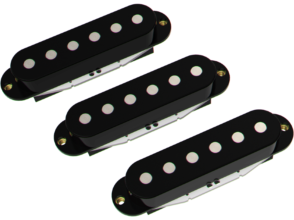 Set x 3 cerámico de alta salida que tiene el suficiente poder para competir con humbuckers estándar. Recomendado para aquellos músicos que buscan un sonido simple bobina agresivo con aumentados medios-graves, su extra bobinado y focalizado campo magnético provisto por sus 2 imanes cerámicos, ofrecen acordes plenos y poderosos junto a notas melódicas que sobresalen con increíble ataque. La versión del medio (middle) ofrece polaridad y sentido de bobinado invertido para obtener cancelación de ruido en las posiciones 2 y 4 de la llave selectora